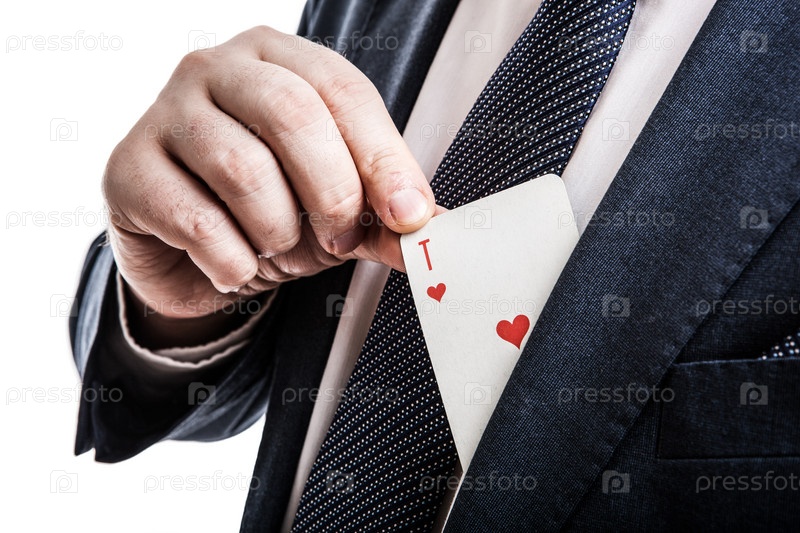 Рука достает из кармана туз червей