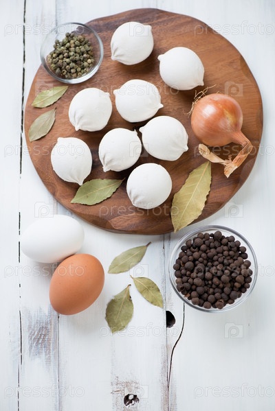 Сырые хинкали и ингредиенты