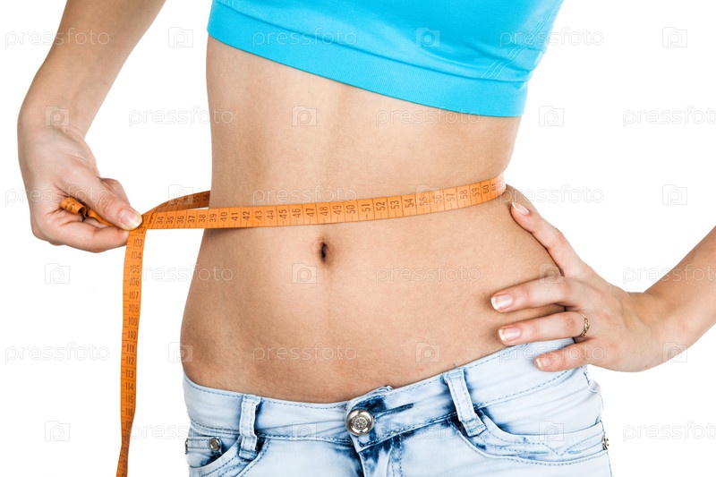 Девушка измеряет объем талии