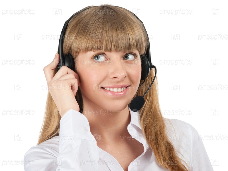 Оператор телефонной службы поддержки, на белом фоне