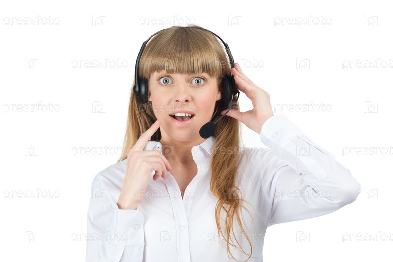Оператор телефонной службы поддержки, на белом фоне