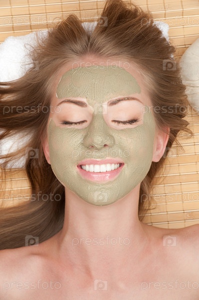 Молодая красивая женщина с косметической маской из глины на лице