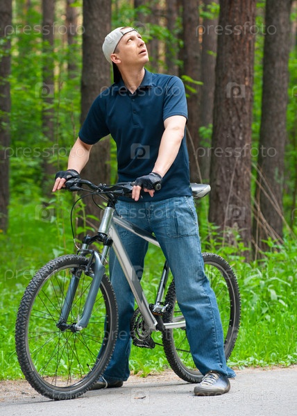 Мужчина на велосипеде в летнем парке