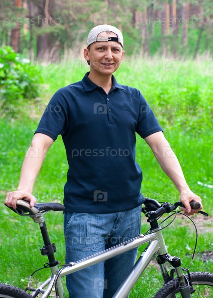 Мужчина на велосипеде в летнем парке