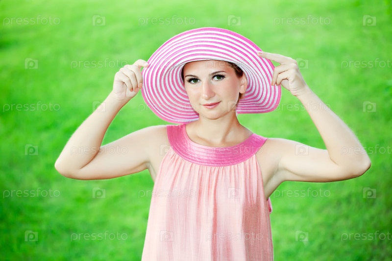 Портрет красивой женщины на фоне зеленой травы