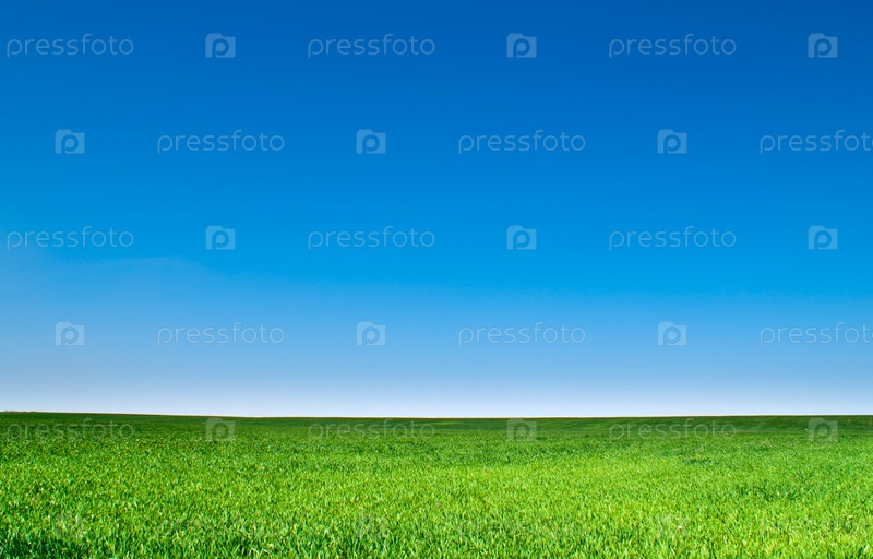 Красивый пейзаж - зеленая трава, синее небо