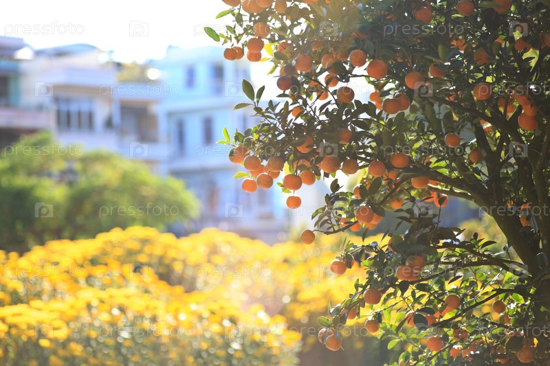 Мандариновое дерево в лучах солнечного света