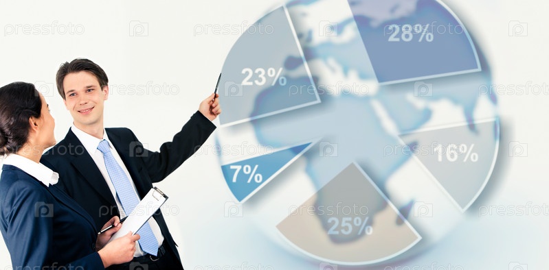 Изображение взаимодействующих деловых людей на фоне бизнес-проекта