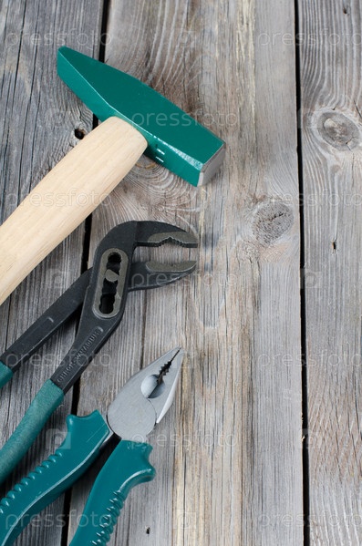 Набор строительных инструментов на старых досках