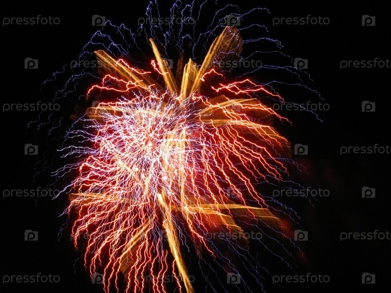 Фейерверк от ярких огней разных цветов на тёмном небе