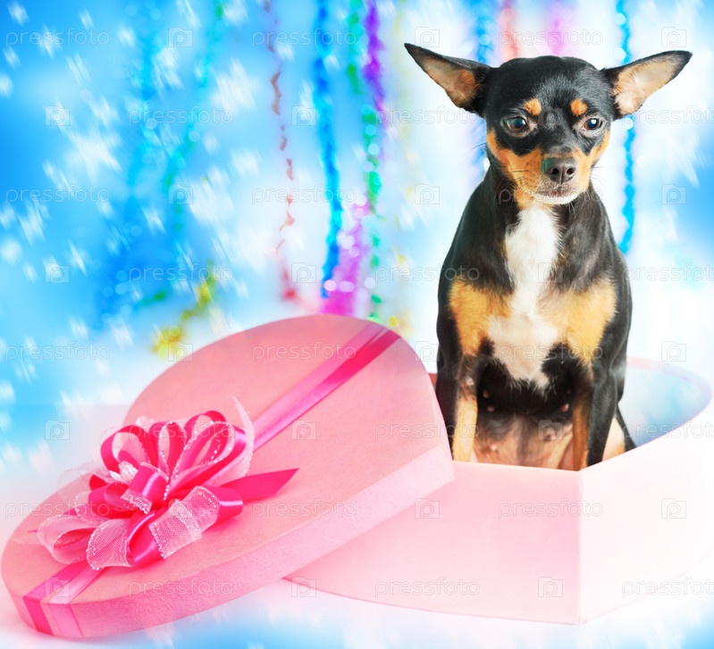 Собака, сидящая в подарочной упаковке