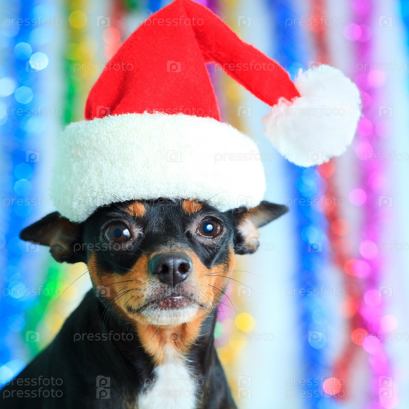 Собака в шапке Санта-Клауса