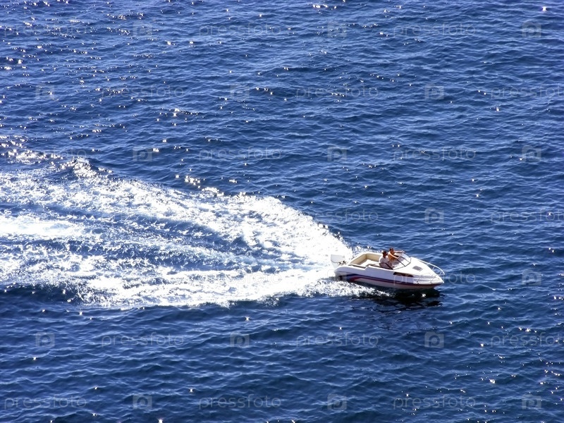 Морская лодка быстро движется к большим площадям морской воды