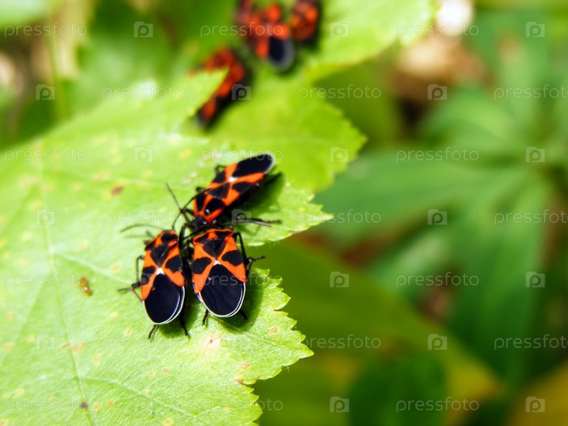 С насекомыми на зеленых листьях растения в солнечный день