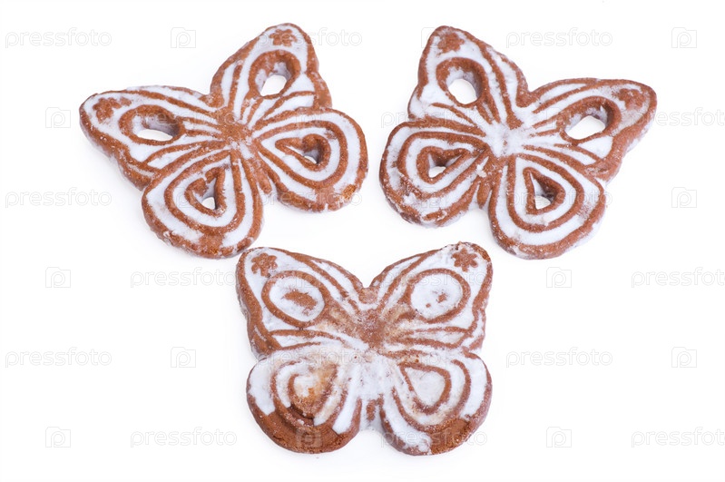 Печенье в виде бабочек на белом фоне