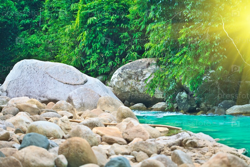 Голубой поток воды в тропическом лесу, Вьетнам