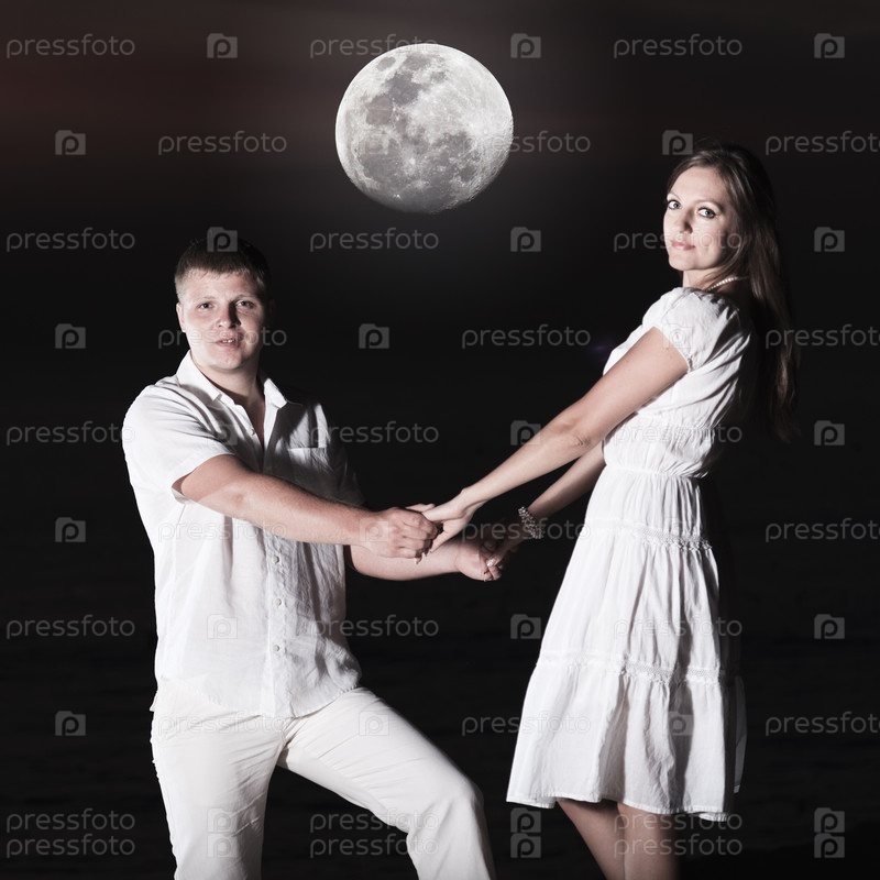 Молодая пара в ночное время на фоне Луны