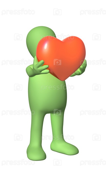 3D башня держит в руках красное сердце