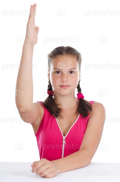 Школьница с поднятой рукой