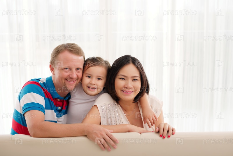 Счастливая семья на диване