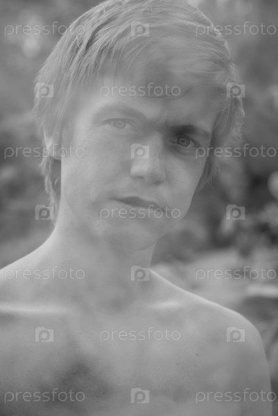 Черно-белый портрет молодого человека, наполненный дымом