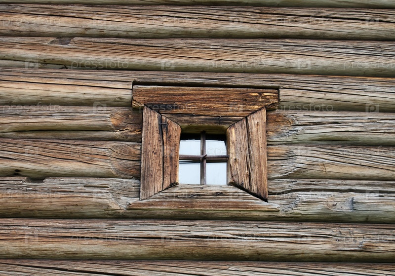 Окно старого деревянного дома на севере России, Архангельск