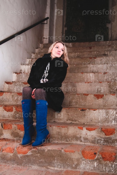 Девушка сидит на ступеньках