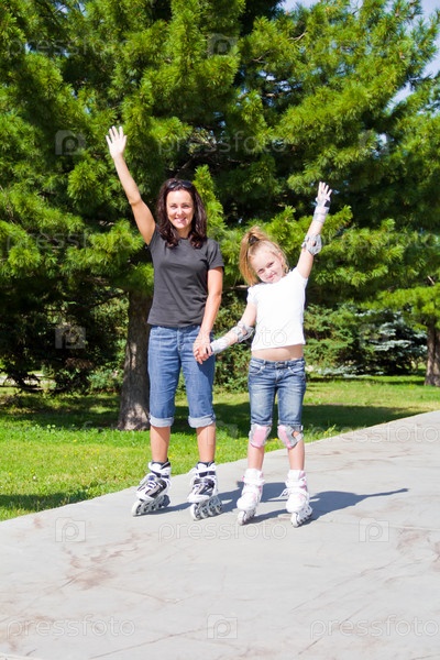 Мать и дочь на роликовых коньках