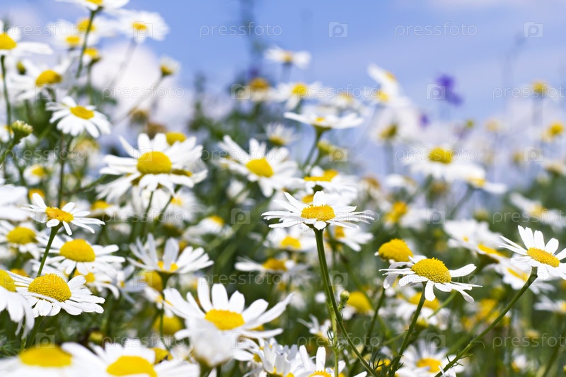 Белые ромашки на фоне неба
