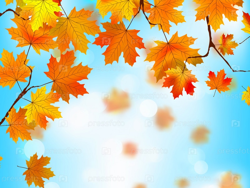 Осенние листья на фоне голубого неба