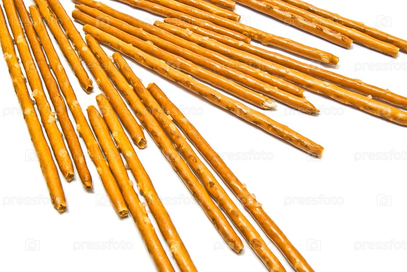 Соленые хлебные палочки на белом фоне