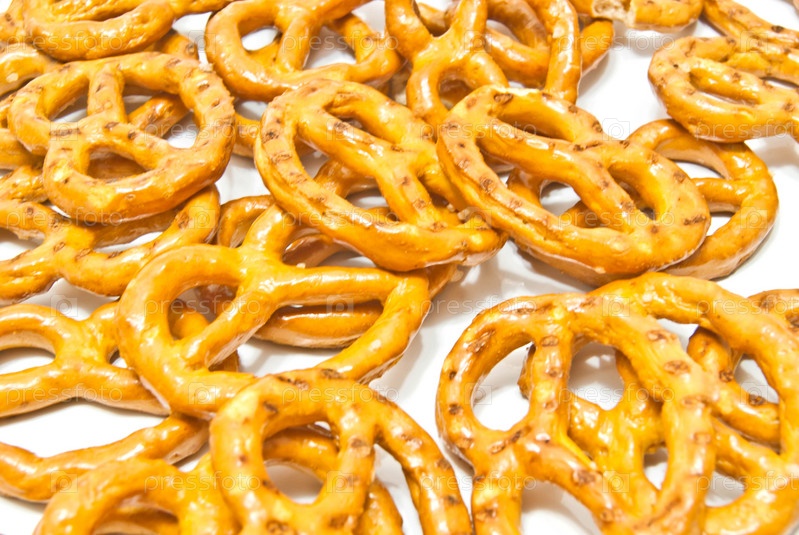 Соленые крендели на белом фоне