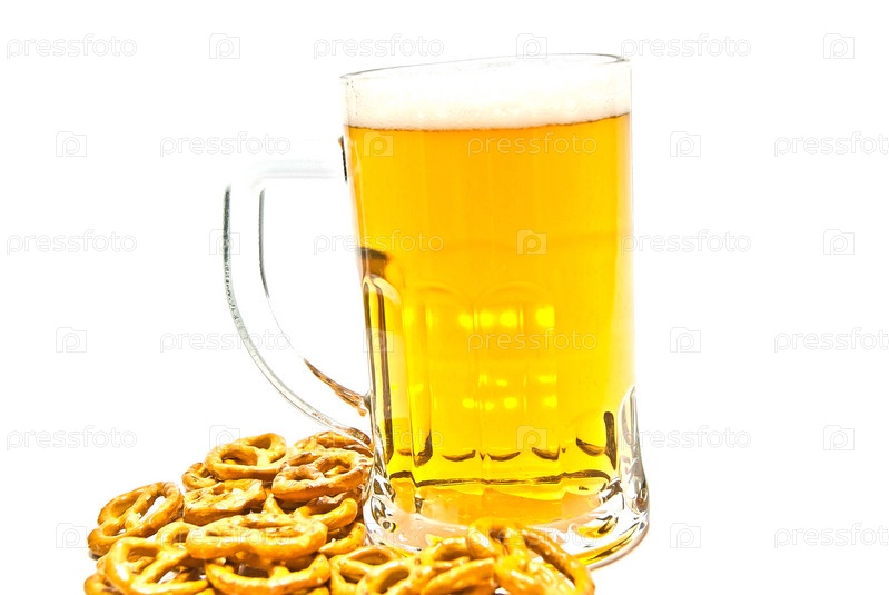 Закуска и пиво на белом фоне