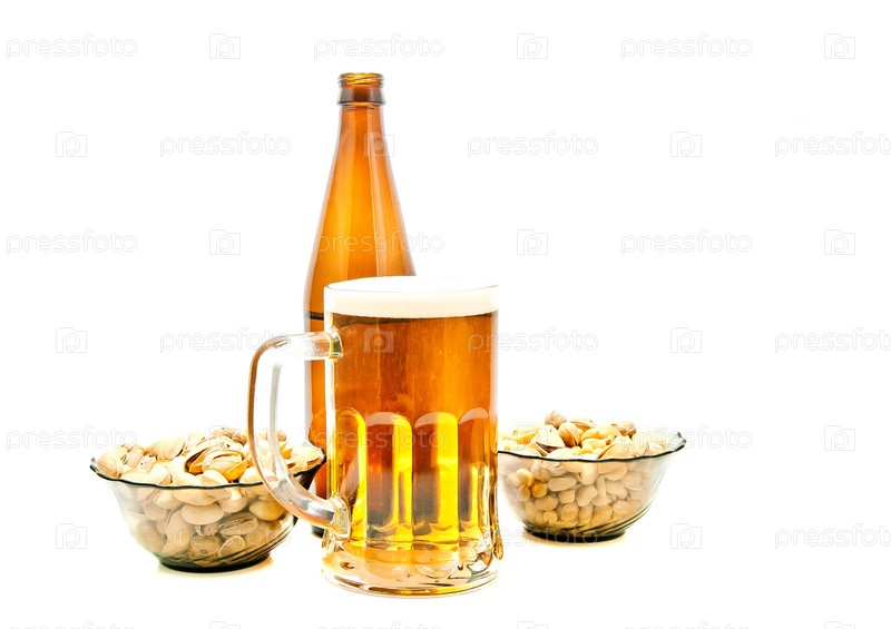 Арахис, фисташки и пиво крупным планом