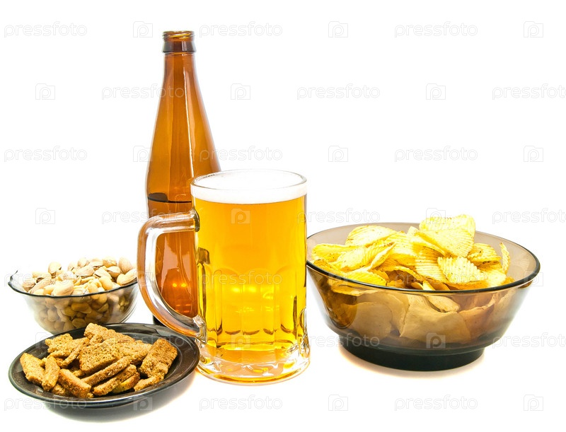 Закусок и светлое пиво крупным планом