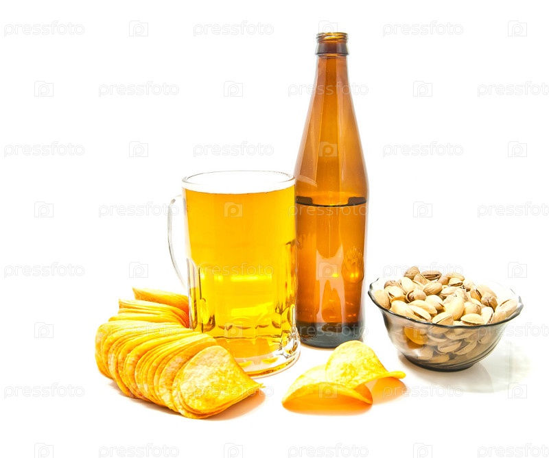 Различные закуски и пиво крупным планом