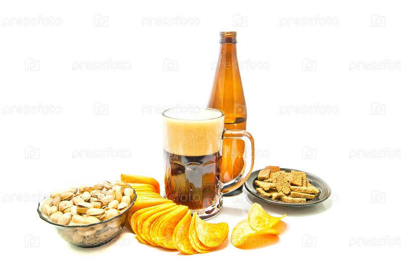 Пиво, чипсы и ржаные сухари крупным планом
