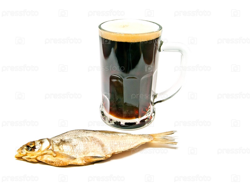 Стакан пива и вяленая рыба крупным планом