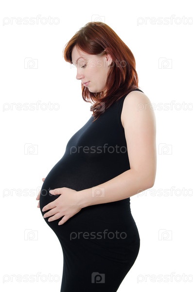 Беременная женщина на белом фоне