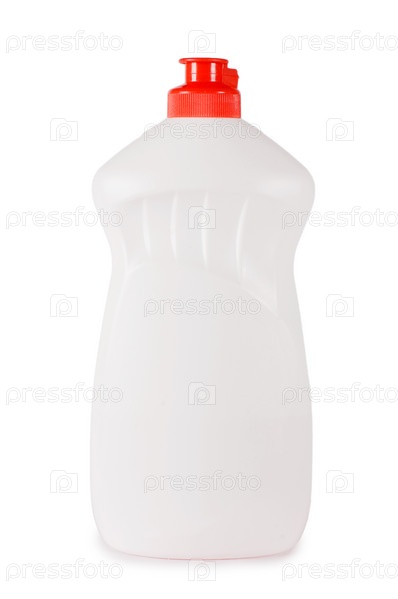 Пластиковая бутылка моющего средства, изолированная на белом фоне