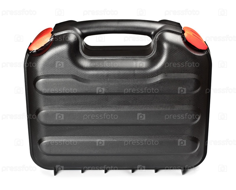Стоящий черный инструментальный ящик изолирован на белом