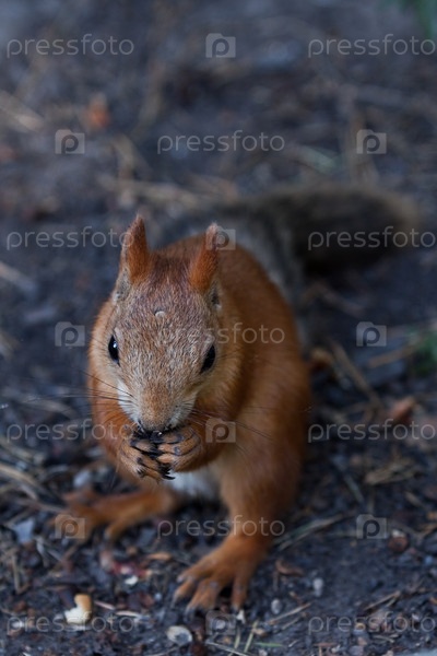 Коричневая белка грызет семечки