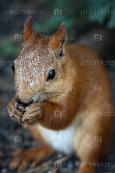 Коричневая белка грызет семечки