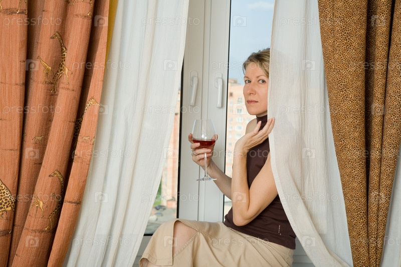 Женщина с бокалом вина у окна
