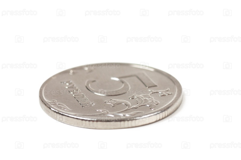 Пятирублевая монета на белом