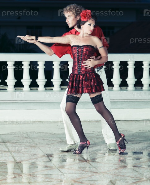 Пара танцует танго в ночное время