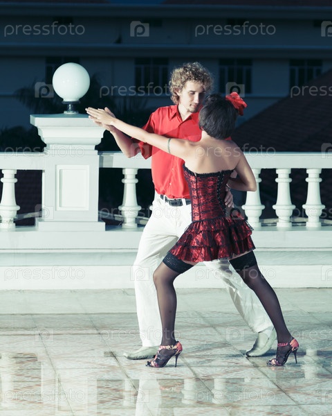 Пара танцует танго в ночное время
