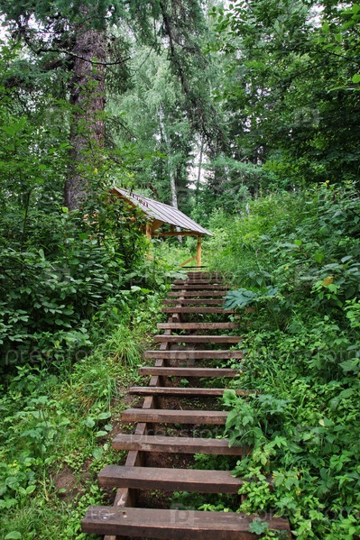 Лестница к беседке в лесу