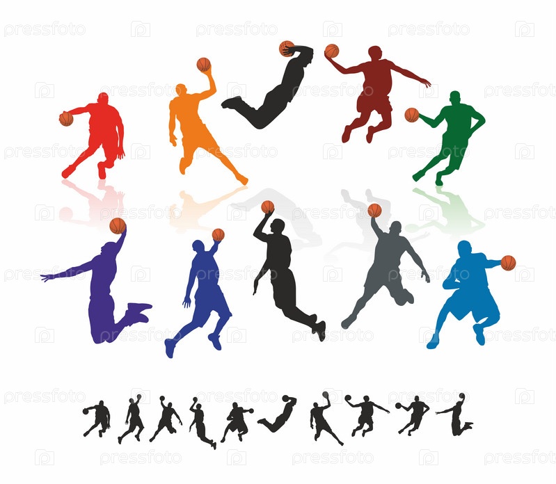 Разноцветные силуэты баскетболистов на белом фоне