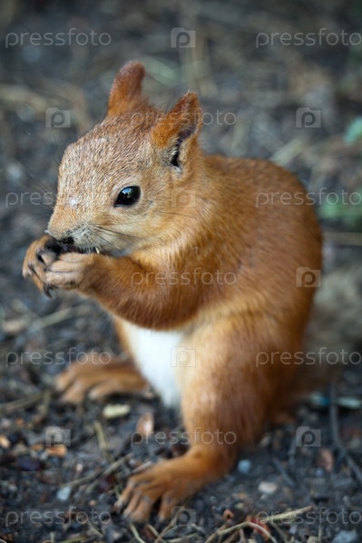 Коричневая белка грызет семечки